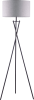 This contemporary floor lamp features a three leg tripod design for support and stabilization