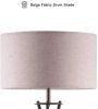 Featuring a beige fabric drum shade. Shade measures: 18 X 18 X 10"
