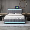 This elegant Upholstered Platform Bed which features stripe design headboard and LED lights adds a contemporary chic look to your bedroom and filled in thick foam to add extra comfort. Colorful lights make your life colorful, you can change lights by remote control at ease.For your convenience, a set of sockets and USB ports is equipped above the headboard.It has saved a lot of trouble for you to charge your phone and pad while you are taking a break.And the 4 big drawers provide plenty of space for you to store your home items.This beautiful Upholstered Platform Bed will certainly be a beautiful and practical piece in your bedroomWeight & DimensionsOverall Product Dimension78"L x56.7"W x 44.5"H(42.5"H-44.5"H)Detail Product DimensionPlease refer to the Size imageNumber of Package2Package DimensionPlease refer to the SpecificationOverall Product Weight129.63lbsWeight CapacityBed:400LBS Drawer:30LBSRecommended Mattress Thickness6"Recommended age> 6 years old