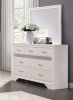 Description:Description & DimensionsThe unique styling of the Luster Collection presents a glamorous option for your bedroom. The dressers embossed faux-wood veneer features a white finish that allows for the acrylic silver glitter front of the hidden jewelry drawer to shine. The jewelry drawer features felt lining to protect your hidden items from wear and tear. Polished chrome bar drawer pulls front the drawers providing complementing contrast to the collections finish.PRODUCT DIMENSIONS:Overall Dimension: 63" x 16.5" x 39"HDrawer interior: 17" x 12.5" x 5" ( 3 upper); 26" x 12.5" x 1.5" (2 hidden); 26.5" x 12.5" x 5" (4 lower)Listing Includes: One Dresser Only.Mirror: Not Included.