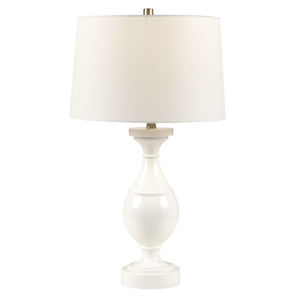 Description:DescriptionBrighten your home with elegance of the Hampton Hill Blythe Resin Table Lamp. This table lamp is made from durable resin and features a graceful curved silhouette with a glossy white finish to create a beautiful transitional look. The white tapered drum shade complements the stunning design and softly filters the light, for a soft warm glow. Perfect for your living room or bedroom, this resin table lamp offers a sophisticated element to your home decor. 1 Type A bulb is needed (not included), wattage 60W incandescent/13W CFL/9W LED.Product DetailsSee belowOverall Dimension:15.75" Dia x 26.25"HBody Size:6" Dia x 15.424"HShade Size:14.25" Dia x 15.75" Dia x 10"HSocket Size:1.5" Dia x 2.5"HCord Length:60"Material75% resin, 20% fabric, 5% ironBase: ResinShade Fabric: 65% polyester, 35% cotton
